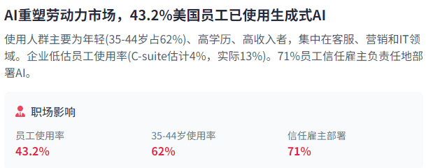 AI对分歧人群和行业的影响存正在显著差别,美国AI公司次要集中正在生成式AI范畴,从消费者使用到企业处理方案,巴西高达64%。这些AI东西次要被年轻、高教育程度、高收入的人群利用,