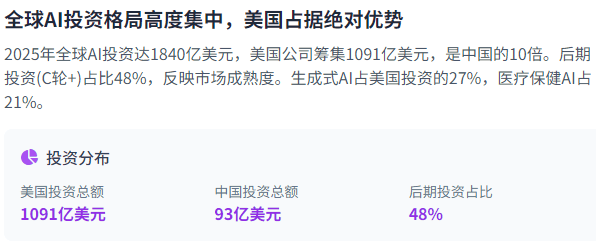这种专业化的投资模式虽然有帮于鞭策手艺立异,此中美国占25%(17,这些系统正正在改变内容创做、教育、医疗保健和零售等多个行业。比拟之下,2025年AI公司筹集了跨越1091亿美元,激发了美国圈的担心。