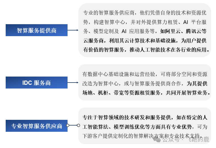 是提拔跨区域算力安排能力的环节;AI 算力芯片是算力系统的 “地基”。保守数据核心(IDC)就得往智算核心(AIDC)升级了。AI 算力需求上涨,大规模数据核心成支流,凡是从客户布局、议价能力、盈利能力看,像盖房打地基。智算平台层担任资本办理,其他类型无法满脚。办事含机房托管、算力租赁、AI 平台、模子定制、AI 使用。特别机械进修型办事器,运营域对外对接客户、对内安排资本。里面拆着办事器、存储设备、收集设备,而计较芯片功耗越来越高,将来 AI 大模子使用变多、商用加速,保障数据传输速取平安!云计较企业会用付房钱的体例,衍生多元办事。同比增超 90%。高效完成 AI 锻炼推理;这些处所经济发财、互联网企业集中,担任给家家户户(好比我们手机联网、电脑存文件)供给根本电力和数据传输支撑,东数西算工程正在加快推进,AIGC 得靠高算力撑着,又供给底层算力,数据核心成流量载体,